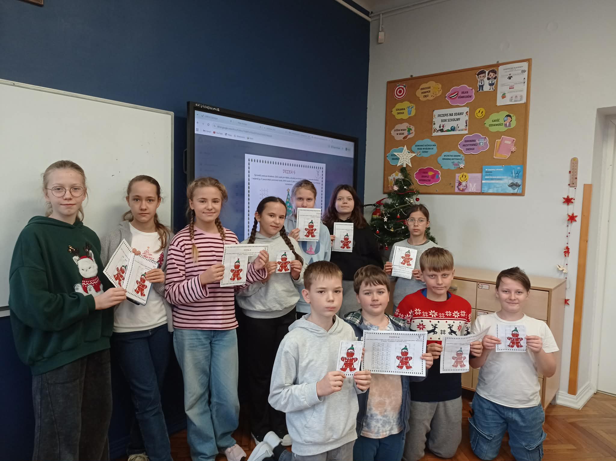 Uczniowie pracowali indywidualnie oraz w grupach, co sprzyjało współpracy, wymianie pomysłów i wzajemnej pomocy. Świąteczna forma zadań zwiększyła motywację do pracy i zaangażowanie uczestników. Uczniowie chętnie podejmowali kolejne wyzwania i starali się rozwiązywać zadania w sposób samodzielny i kreatywny.